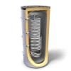 • Le ballon tampon avec appoint solaire, doté d’un serpentin : le fluide caloporteur des circuits des panneaux solaires thermiques passe dans le serpentin du ballon tampon pour réchauffer l’eau.